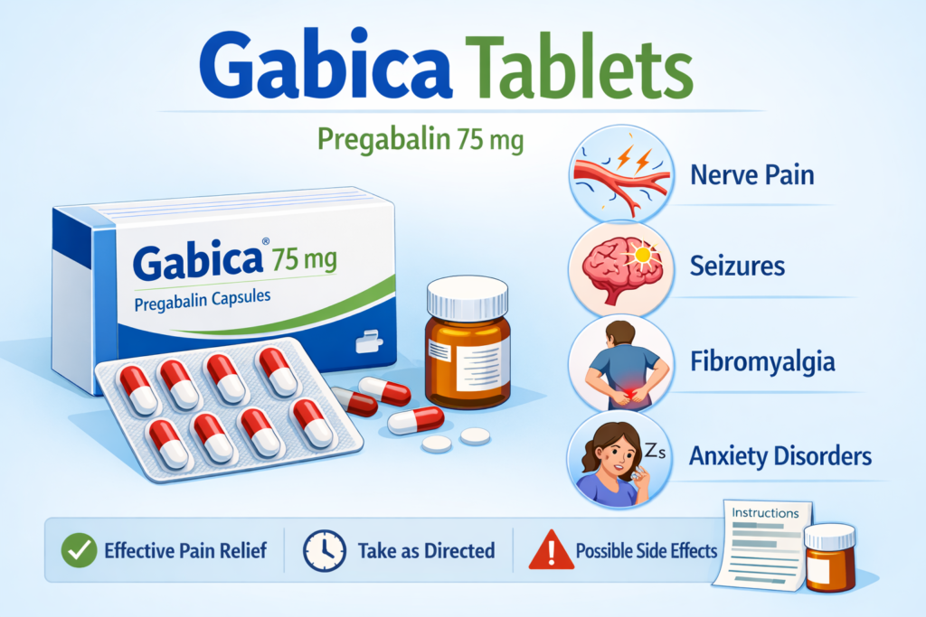 Gabica Tablet contains Gabapentin, an anticonvulsant and neuropathic pain agent. It does not work like regular painkillers. Instead, it calms overactive nerves in the brain and spinal cord.